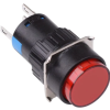 Green latching push button switch featuring a round actuator and IP65 protection rating. The switch features NO and NC contacts and fits standard 16mm panel cut-outs. The switch is suitable for a wide range of applications including industrial, prototyping, domestic, appliances etc.